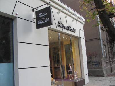 Внешнее оформление бутика французской моды (вывеска, световой панель-кронштейн)