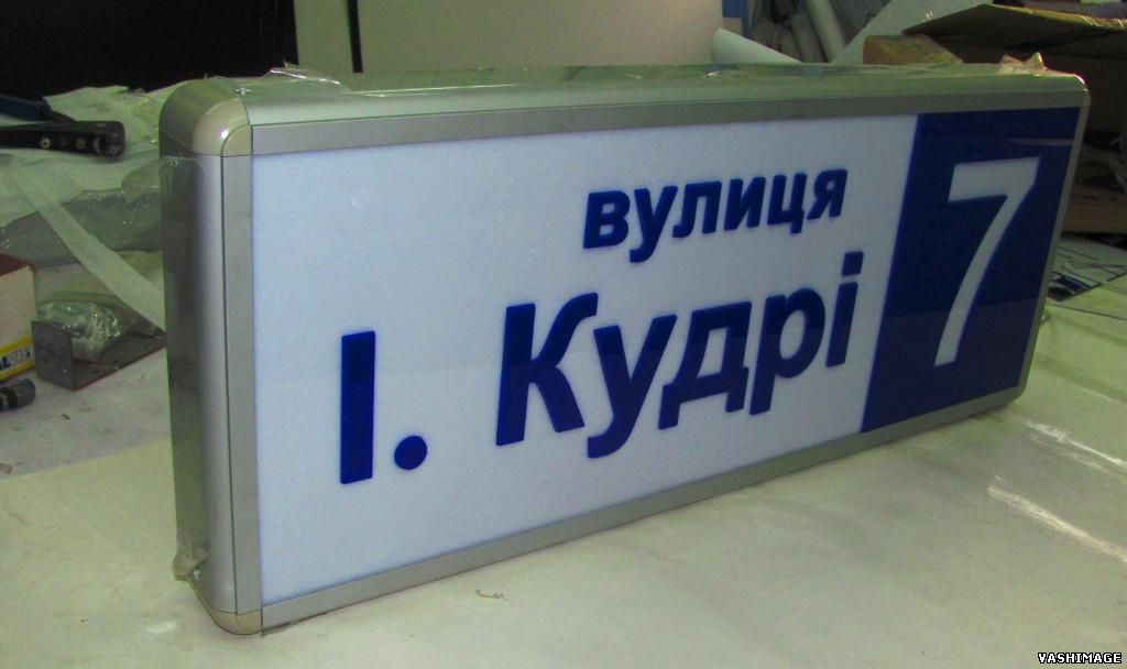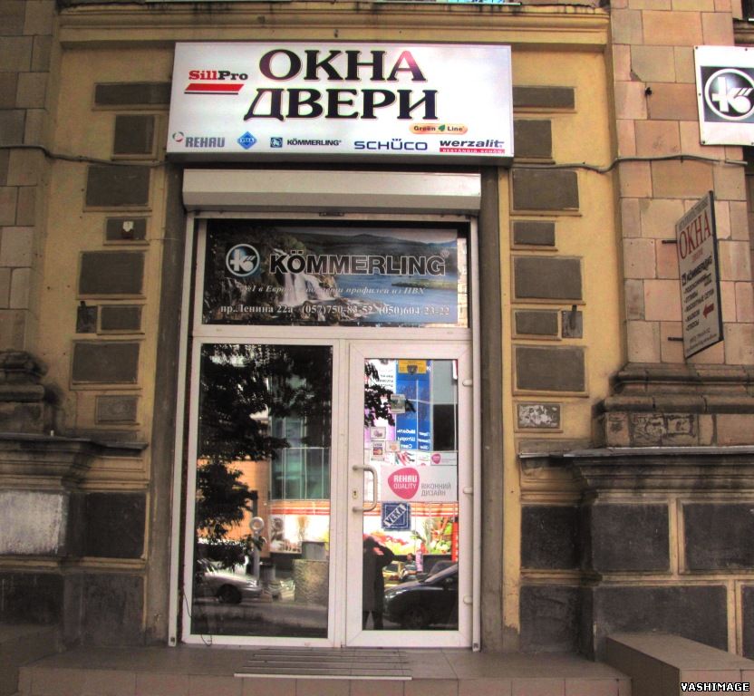 Фасадная световая вывеска "ОКНА и ДВЕРИ" - лайтбокс: дизайн; изготовление и монтаж