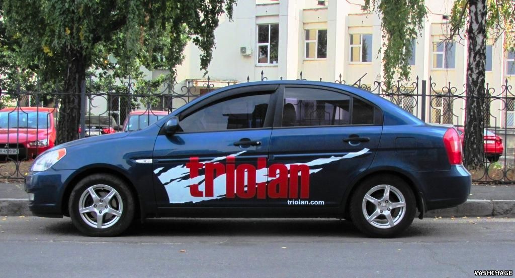 Брендирование автотранспорта TRIOLAN: замеры; дизайн; адаптация макетов; изготовление и аппликация