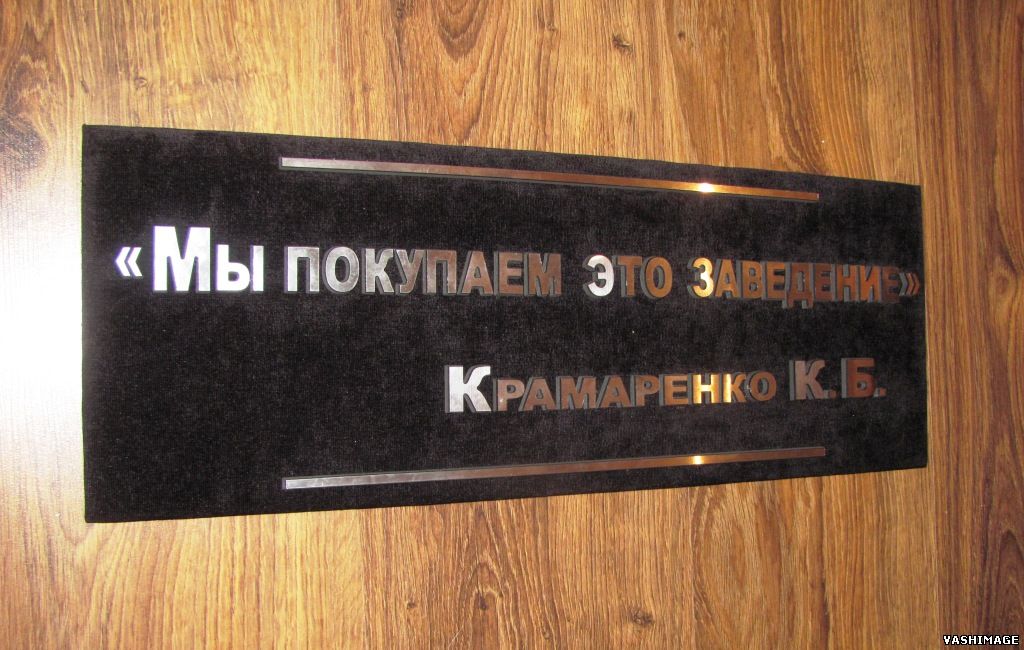 Интерьерная табличка от VASHIMAGE с тканевым бархатным фасадом и объёмными элементами толщиной 4,5мм - красиво, презентабельно. Чёрный бархат придаёт солидный и стильный вид информационному носителю
