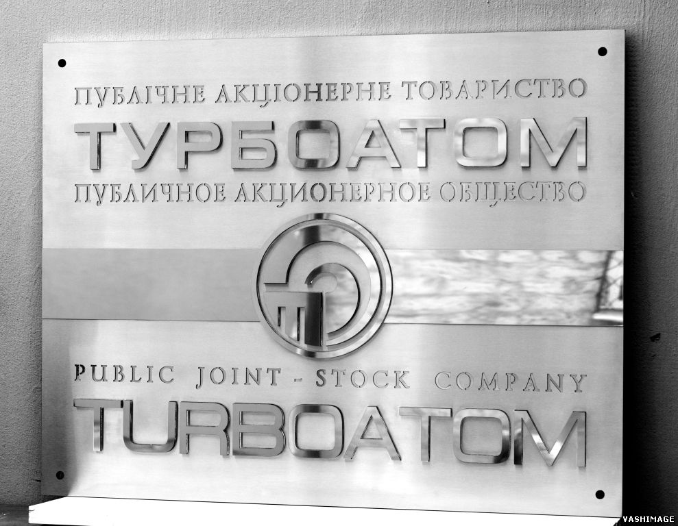 Проведена работа по воплощению дизайнерского макета фасадной вывески ПАО "Турбоатом" в материал. Основным материалом было выбрана нержавеющая сталь (глянец, шлифованная) и две технологии обработки: лазерная сквозная резка и инкрустация органического стекла