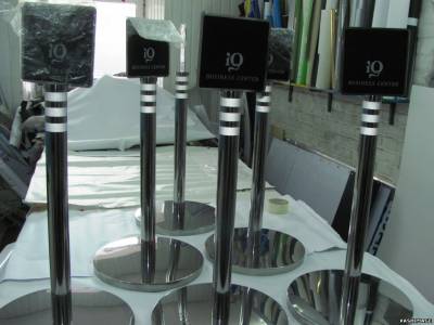Индивидуальное проектирование и изготовление информационных стоек-ограничителей въезда из полированной нержавеющей стали весом 15 кг. для БЦ-IQ